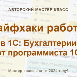 Что представляет собой мастер-класс: 4 видеоурока общей продолжительностью 2,5 часа 3 бонусных видео из закрытого клуба бухгалтеров (еще 2 часа) Начало обучения в любое удобное время Бессрочный доступ к видео сразу же после оплаты Что интересного обсудим на мастер-классе: самые важные настройки