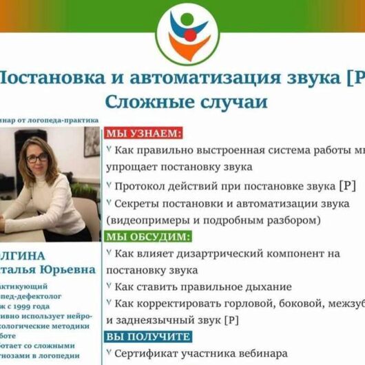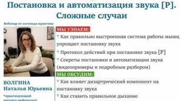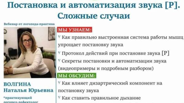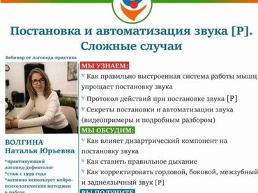 Отзывы о курсе «Постановка и автоматизация звука Р . Сложные случаи» от Натальи Волгиной