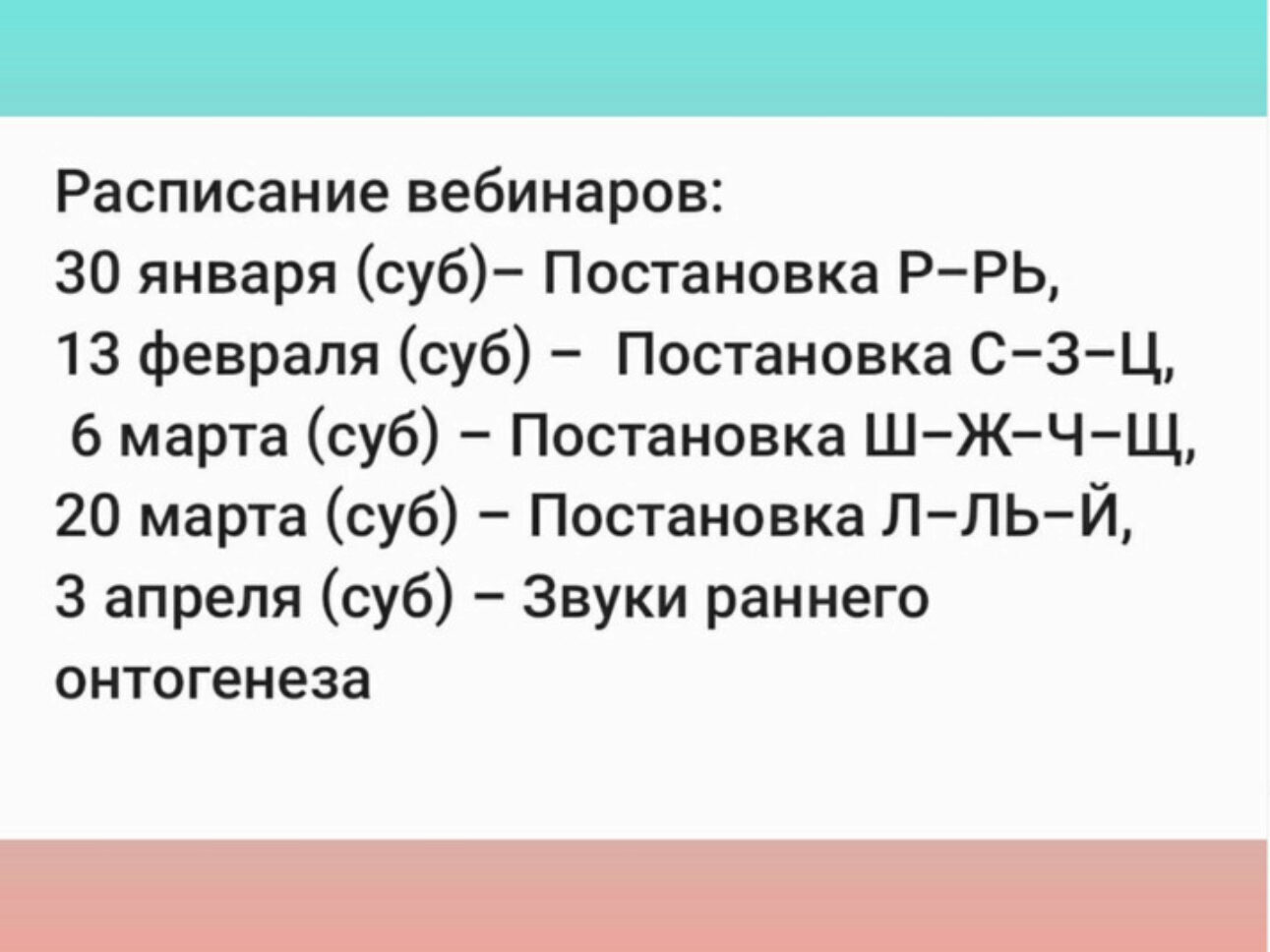 Очень полезный и интересный Вебинар от известного логопеда Уже завтра 30 января в 16:00 Мы узнаем: - Как правильно выстроенная система работы мышц упрощает постановку звука - Протокол действий при постановке звука Р - Секреты постановки и автоматизация звука (видео примеры и подробным разбором) Мы
