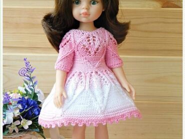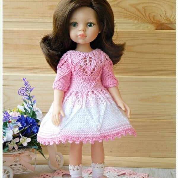 Распашное платьице с застежкой на пуговицы для куколок ростом 21-23 см (Паола Рейна Мини, Берхуан Мини, Крузелингс, также подходит для кукол Блайз). Платье вяжется на двух спицах №1.5-1.7 Плотность вязания (по лицевой глади): Образец 20п(+2 кр) х 20 рядов = 5.8 х 4.3 см Платье на фото связано из