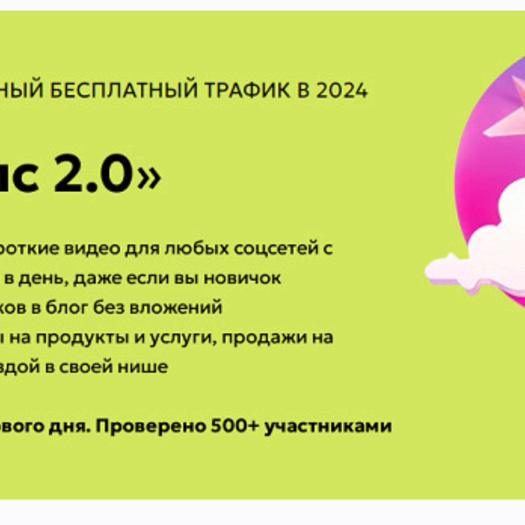 Вы создадите для себя бесконечный поток бесплатного трафика, а значит, обеспечите себя или своих клиентов заявками и продажами на полгода вперед и сможете зарабатывать дополнительные 50 - 300 тысяч рублей в месяц.