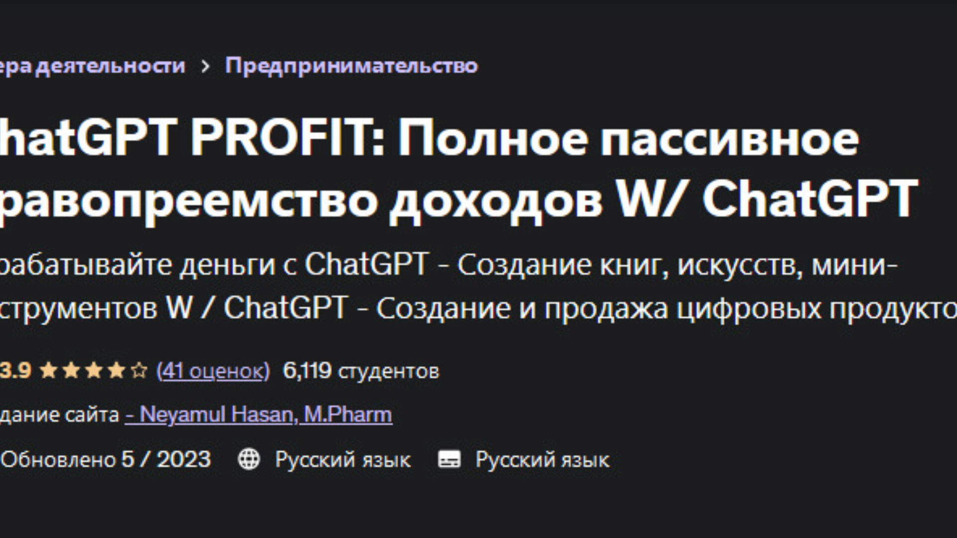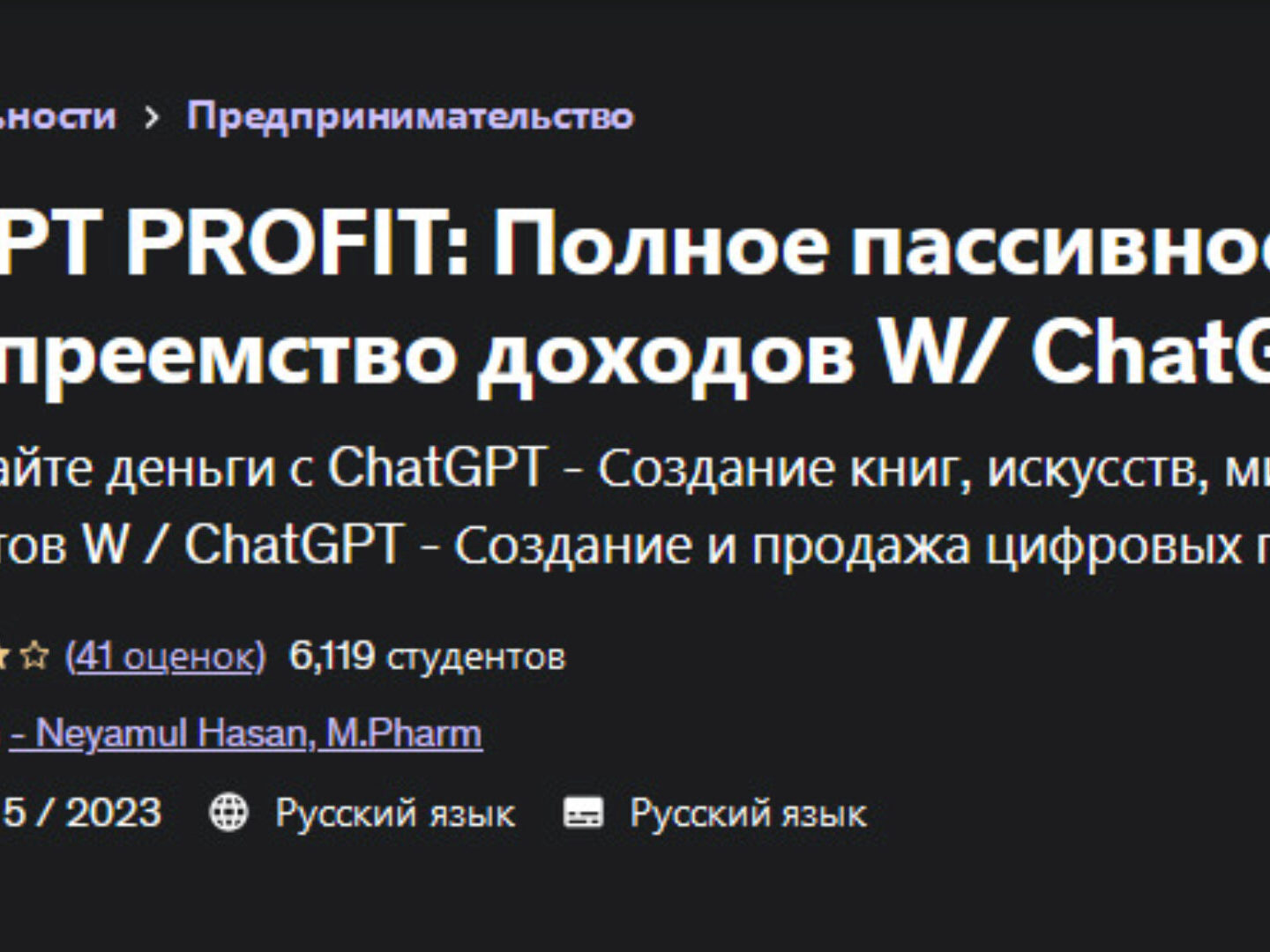 Neyamul Hasan, Неямул Хасан «ChatGPT Profit: полное пассивное правопреемство доходов W/ ChatGPT» — Udemy