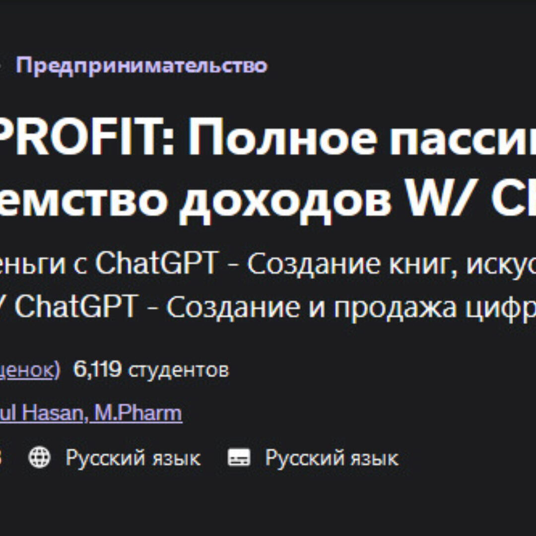 Добро пожаловать на курс «ChatGPT PROFIT: полный курс пассивного дохода W/ ChatGPT».