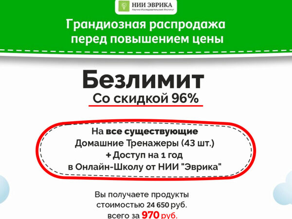 [НИИ эврика] Безлимит на все Домашние Тренажеры