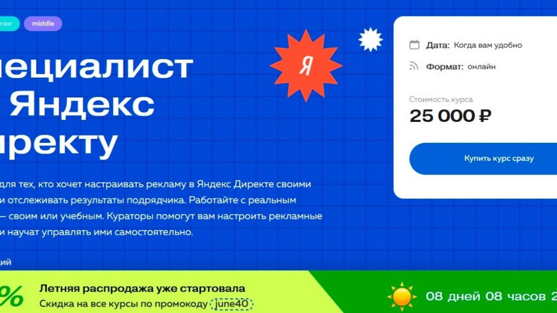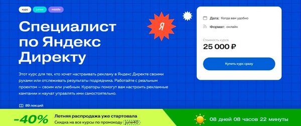 Курс построен от простого к сложному, а значит вы сможете изучить все возможности Яндекс Директа, постепенно углубляясь в инструменты рекламы и отрабатывая полученные знания на реальном проекте. В телеграм-чате студентов вы найдете поддержку и общение с сокурсниками, сможете обсудить лекции и поделиться полезными материалами друг с другом