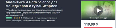 Никита Сергеев «Аналитика и Data Science для менеджеров и гуманитариев» — Udemy