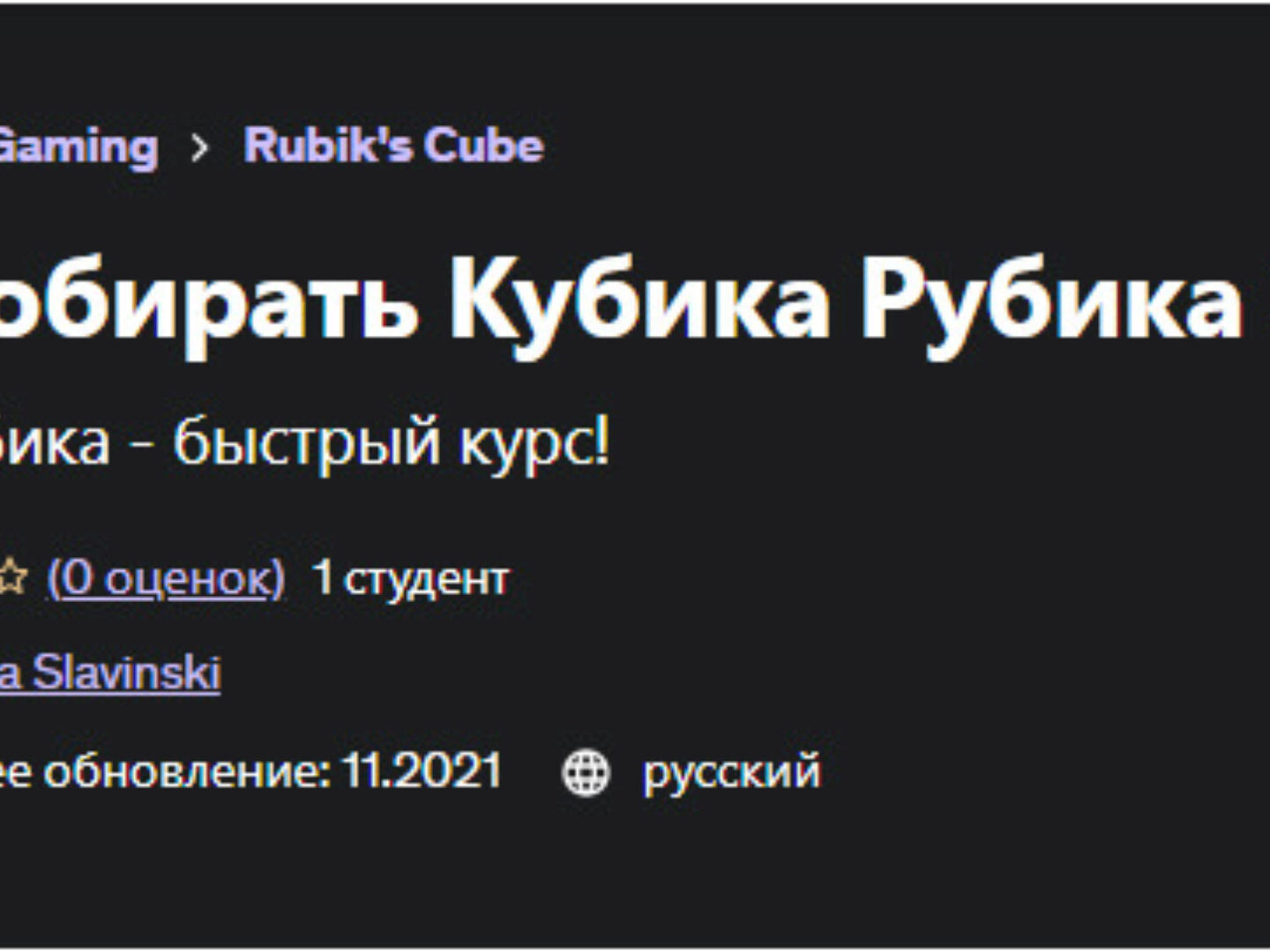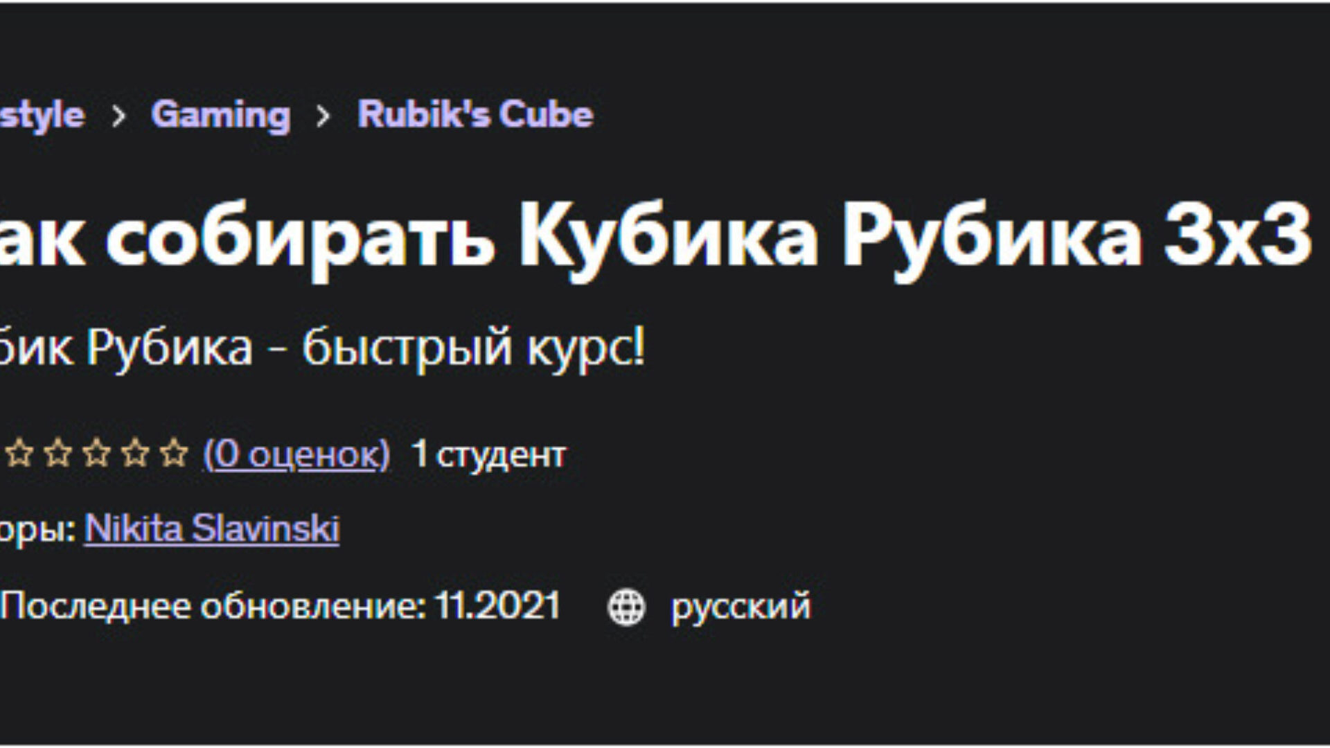 Отзывы о курсе [Udemy] Как собирать Кубика Рубика 3x3 (Nikita Slavinski)