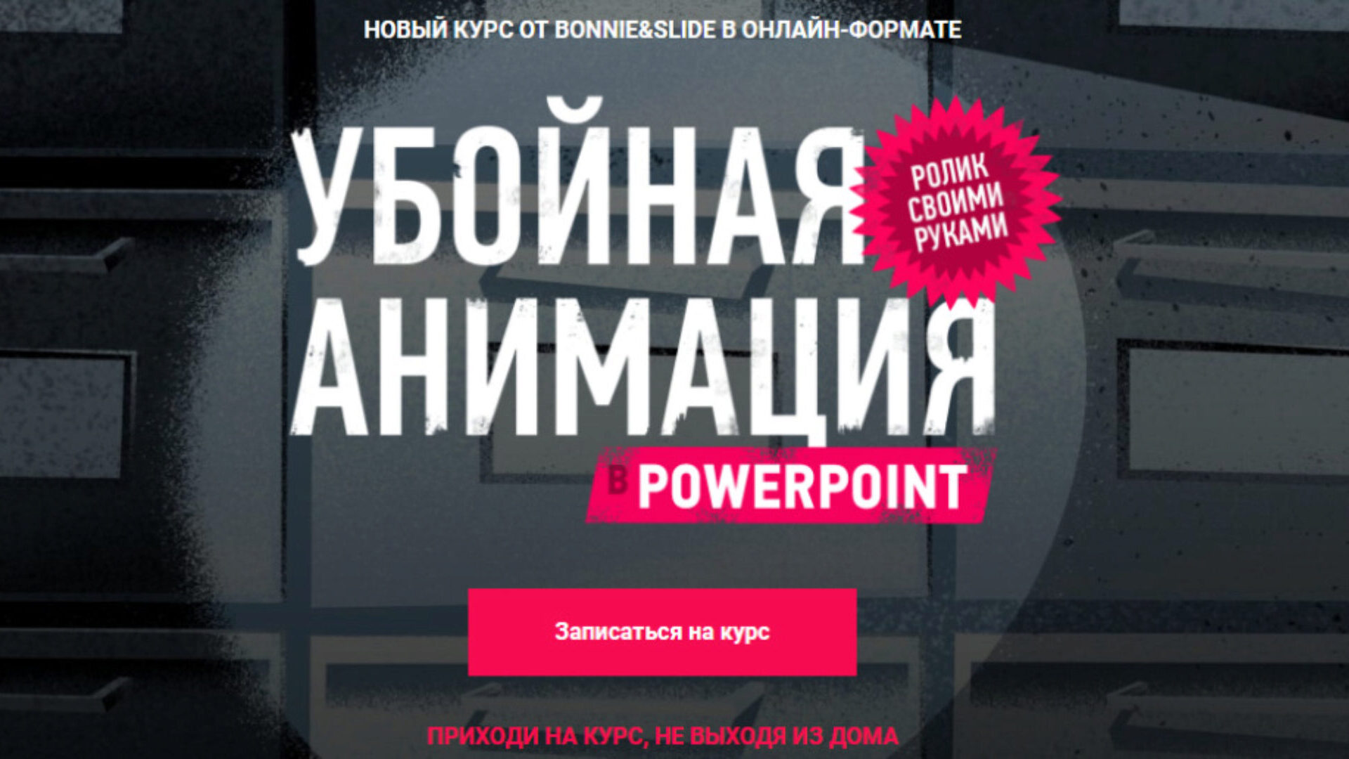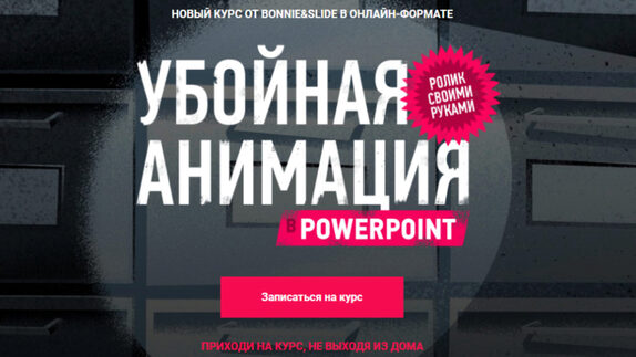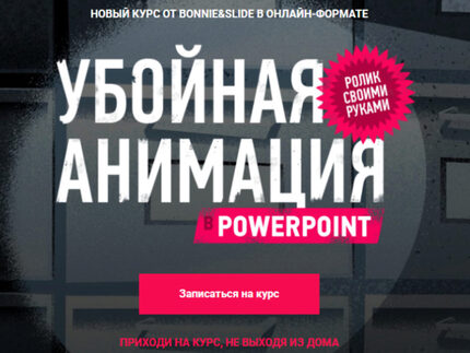 Онлайн-курс от ведущей студии презентаций Bonnie&SlideРассекреченный арсенал инструментов для создания убойно-красивых слайдов только силами PowerPoint. Этот курс подойдет и для тех, кто уже владеет программой, но его слайды почему-то выглядят как в 1997, и для новичков, желающих быстро освоить