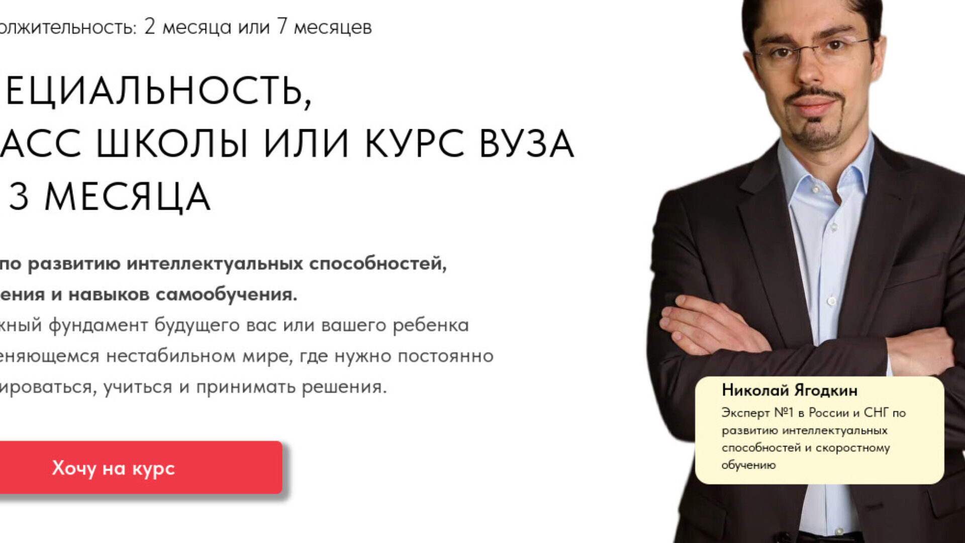 Николай Ягодкин «Специальность, класс школы или курс вуза на 3 месяца. Тариф Максимум»