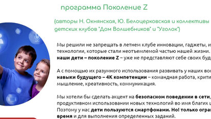 Нина Окнянская, Юлия Белоцерковская Программа летнего лагеря «Поколение Z» — Яркие Мы