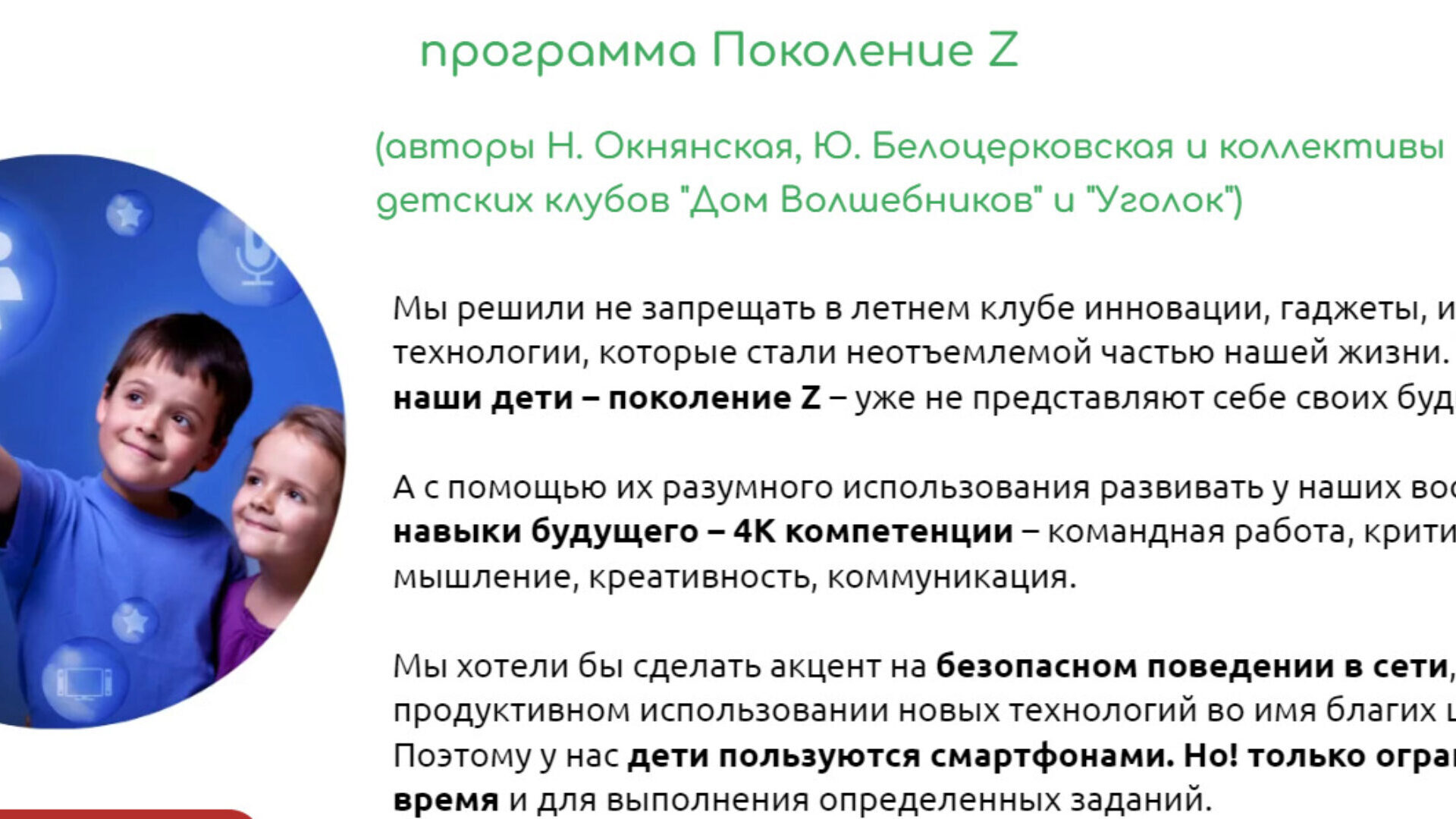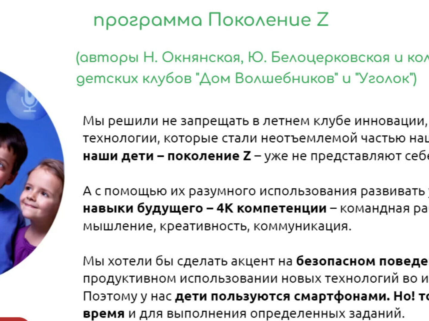 Отзывы о курсе Программа летнего лагеря «Поколение Z» от Нины Окнянской, Юлии Белоцерковской
