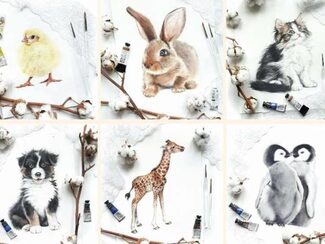 Узнайте, как реалистично изобразить акварелью пушистых любимцев Программа курса Включает подробный обзор необходимых материалов, упражнения Онлайн урок «Мурзик». Работа с контрастными оттенками - как создать эффект пушистой шерсти и не получить грязь. Онлайн урок «Пушок». Техника работы с