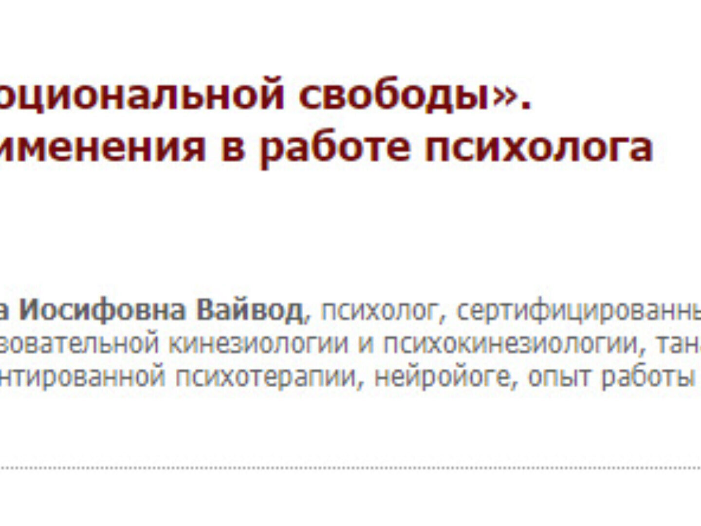 Отзывы о курсе «Техника эмоциональной свободы. Практика применения в работе психолога» от Нины Вайвод