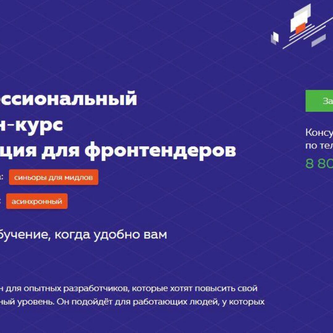 Профессия «Фронтенд-разработчик» Длительность — 1 год и 3 месяца Старт 20 сентября Гарантия трудоустройства Курс разработан для тех, кто хочет сменить профессию и стать высокооплачиваемым профессионалом. Он подойдёт для работающих людей, у которых мало времени. Готовим востребованных разработчиков