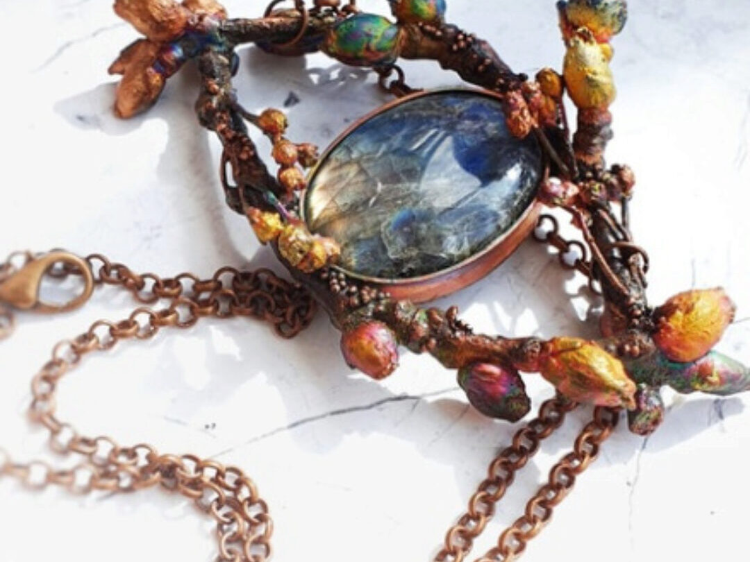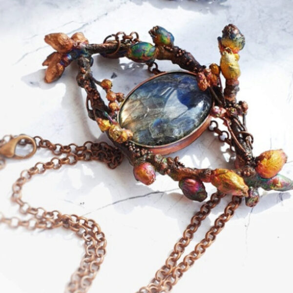 1. Тайна эльфийского леса. Кулон с лабрадоритом и листьями Каракао
