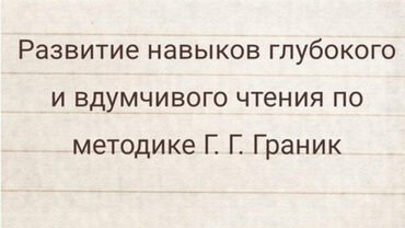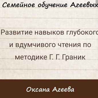 Оксана Агеева «Развитие навыков глубокого и вдумчивого чтения по методике Г.Г. Граник»