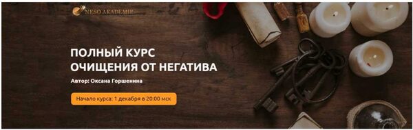 Полный курс очищения от негатива. Тариф Золото (Оксана Горшенина) Пройдя курс вы: Научитесь определять наличие и вид негативного воздействия; Выбирать оптимальный способ очищения в зависимости от имеющегося негатива на человеке; Снимать воздействия различного характера - порчи, сглазы, проклятья,