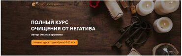 Полный курс очищения от негатива. Тариф Серебро (Оксана Горшенина) Пройдя курс вы: Научитесь определять наличие и вид негативного воздействия; Выбирать оптимальный способ очищения в зависимости от имеющегося негатива на человеке; Снимать воздействия различного характера - порчи, сглазы, проклятья,