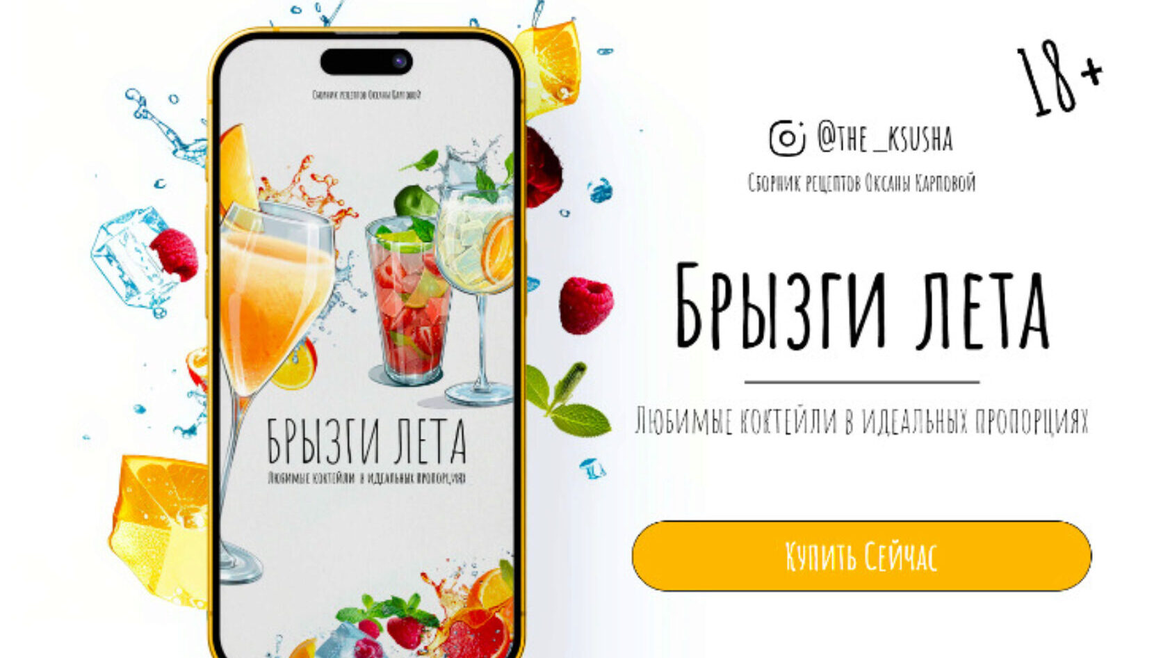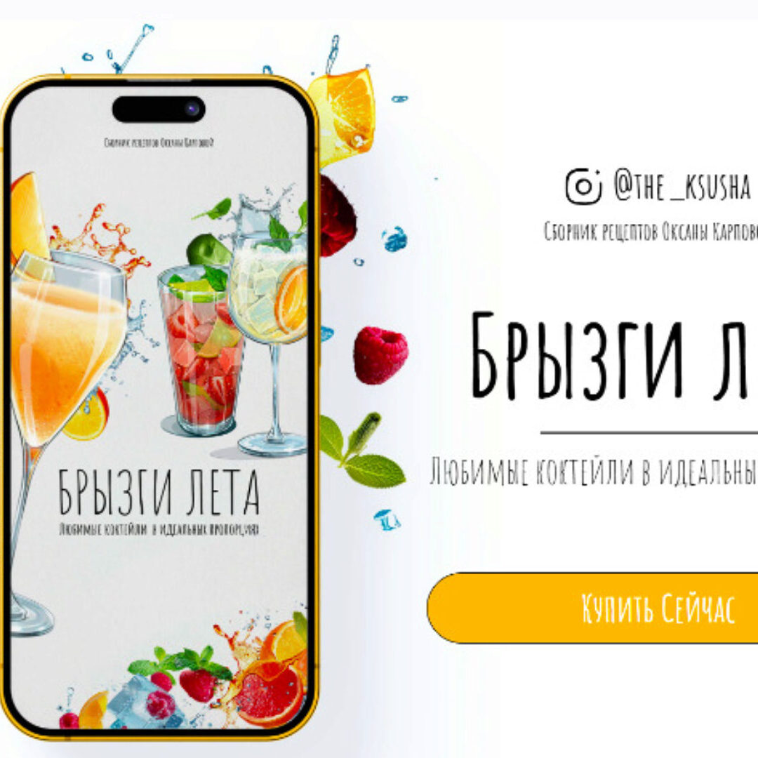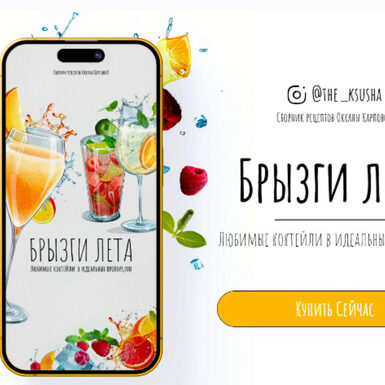 - В сборник «Брызги лета» вошли 13 рецептов коктейлей. Теперь вы легко сможете приготовить идеальный мохито, апероль шприц и др., ведь для каждого рецепта я вывела оптимальные пропорции.