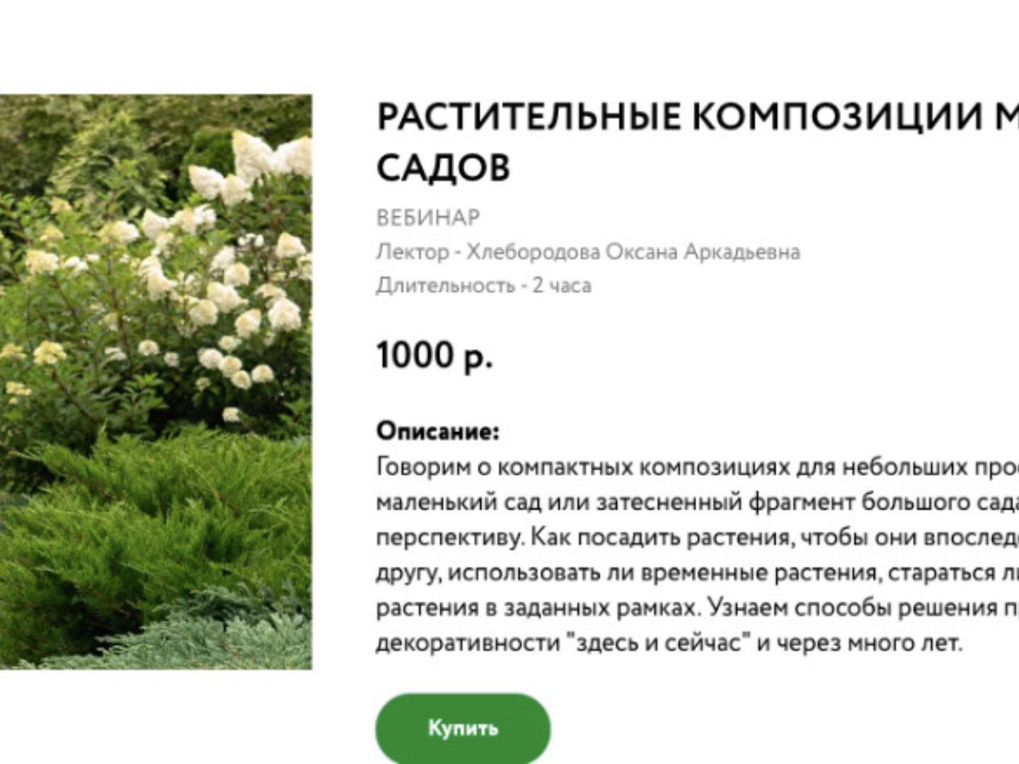 Оксана Хлебородова «Растительные композиции малых садов» — Школа Ландшафтного Дизайна