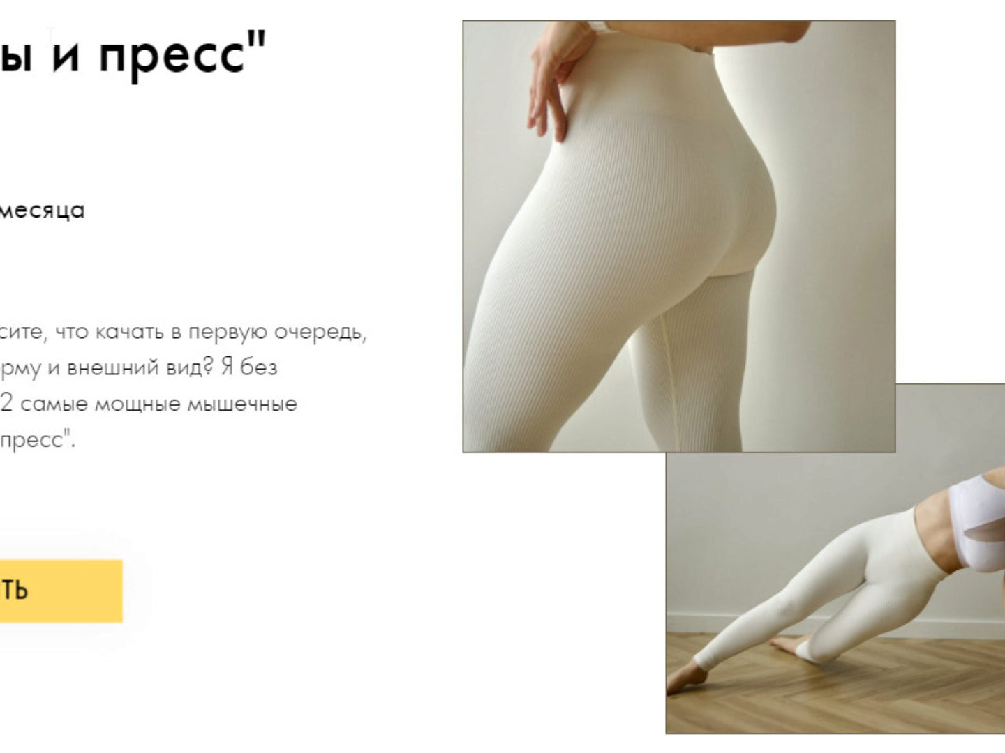 Курс «ЯГОДИЦЫ И ПРЕСС» призван не только улучшить форму сейчас, но и научить вас новому движению на долгие годы.