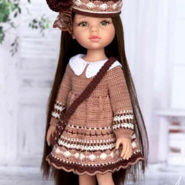 PDF журнал по вязанию кукольного наряда. Предназначен для кукол подружки Паола Рейна 32 см (Paola Reina), но может подойти и другим куклам с аналогичными размерами.
