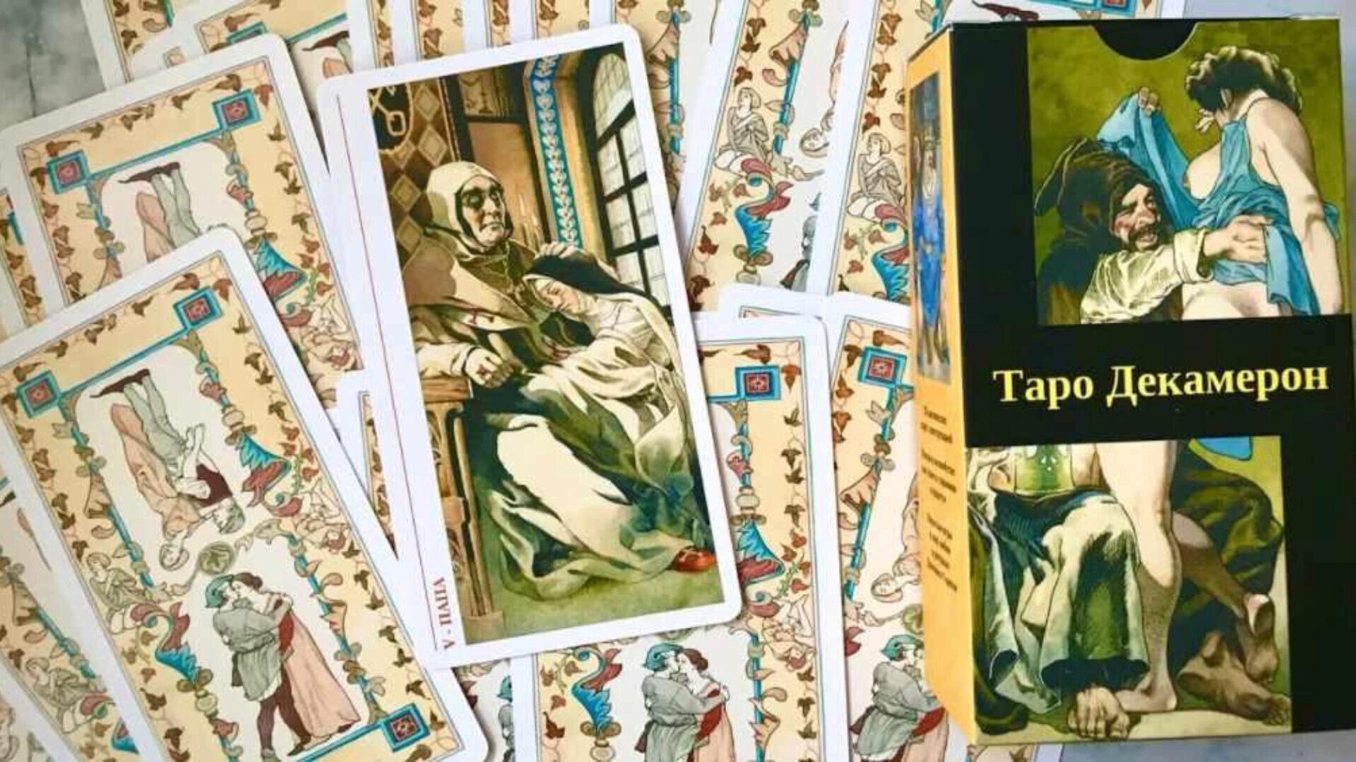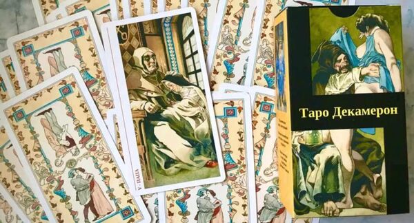 Декамерон — прекрасное, забавное, эротичное и очень откровенное Таро. В Таро Декамерон, созданной талантливым итальянским живописцем Гиацинто Годензи, из патины времен восстают картины средневековья, наполненные любовной страстью, нежностью, ревностью и сексом и запечатленные в новеллах «Декамерона» Джованни Бокаччо.