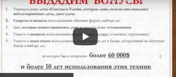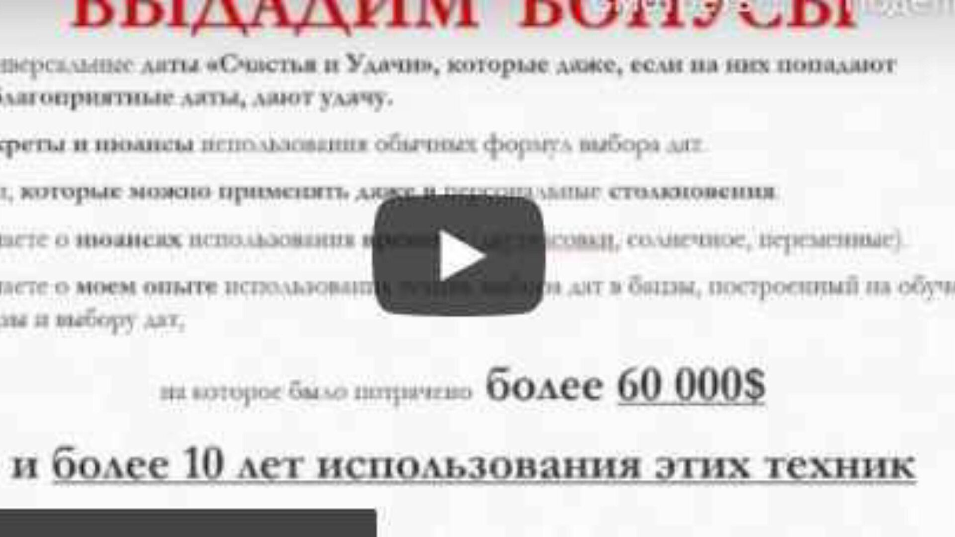 Онлайн-семинар «Индивидуальный выбор дат для начинающих» Методика представляет собой пошаговую инструкцию для выбора благоприятной даты для особо важных событий: - переезд - свадьба - основание бизнеса - устройство на работу - крупные инвестиции А также даты - для менее судьбоносных, но важных