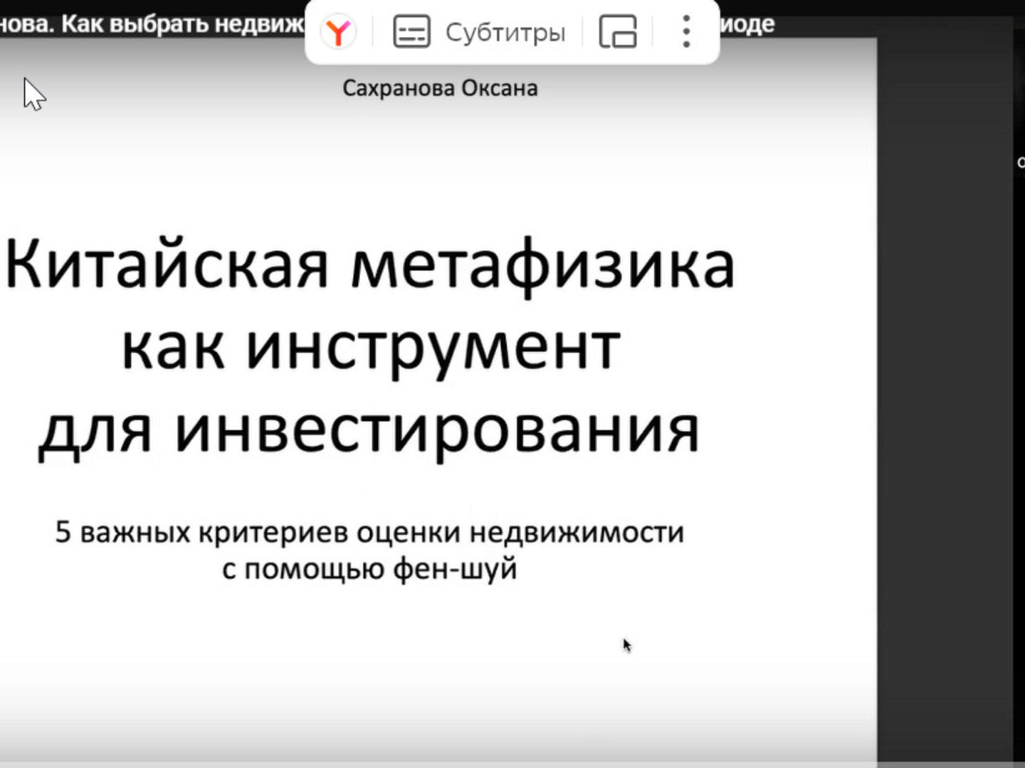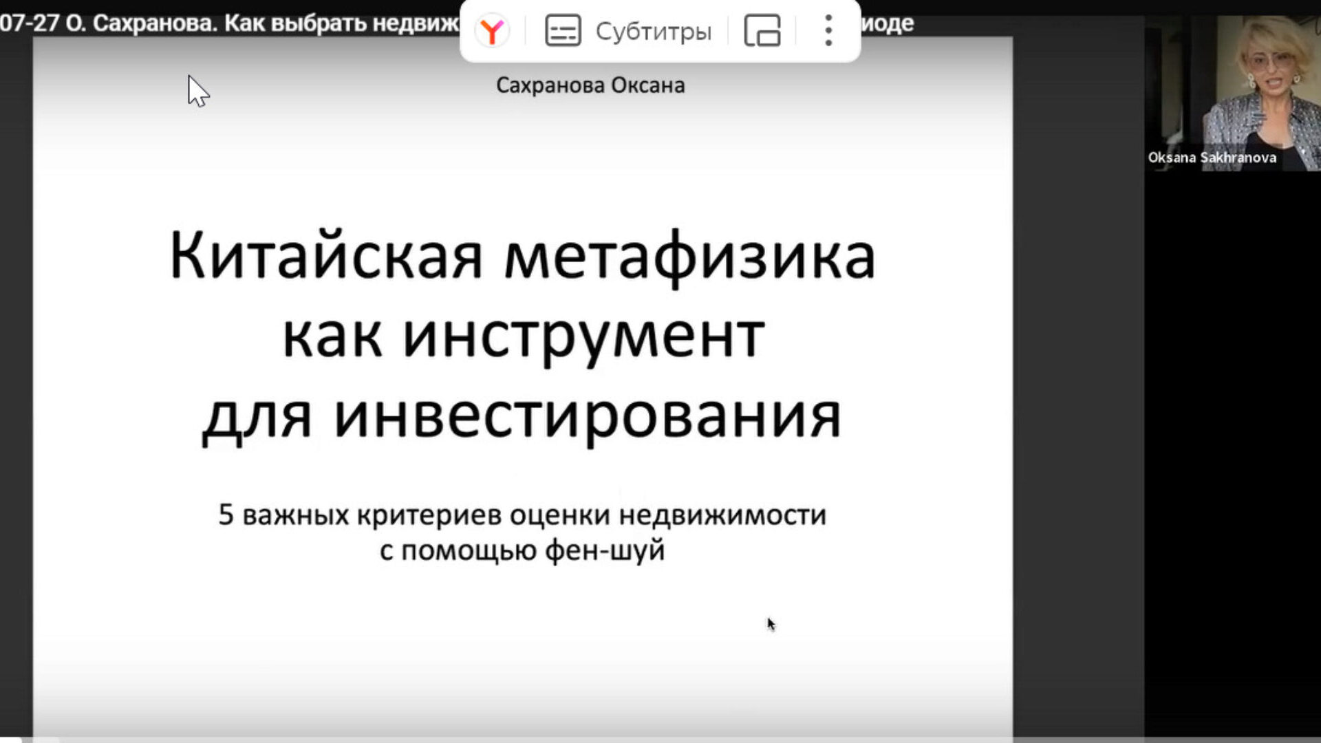 Оксана Сахранова «Как выбрать недвижимость для инвестирования в 9 периоде»