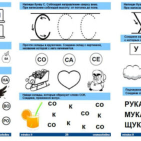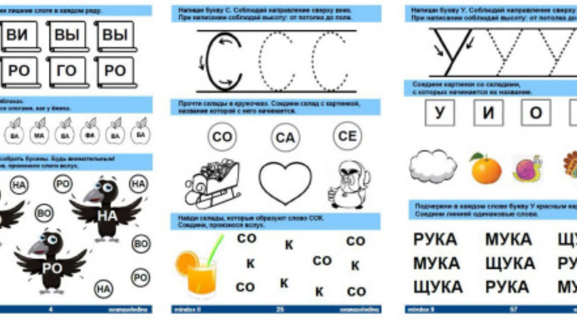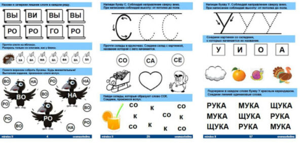 1. Часть первая. БУКВЫ И СЛОГИ Включает в себя пособия для отработки гласных и чтения слогов с одинаковой и разными гласными. 16 страниц