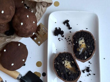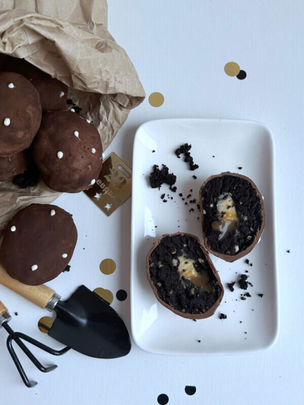 Пирожное «Картошка «Ферреро»: Сочный и насыщенный шоколадный бисквит Фундучный крем на основе молочного и темного шоколада Хрустящая начинка, как в той самой конфете Мягкая сливочная карамель без излишней приторной сладости (два способа приготовления) Идеальное покрытие на молочном шоколаде (без