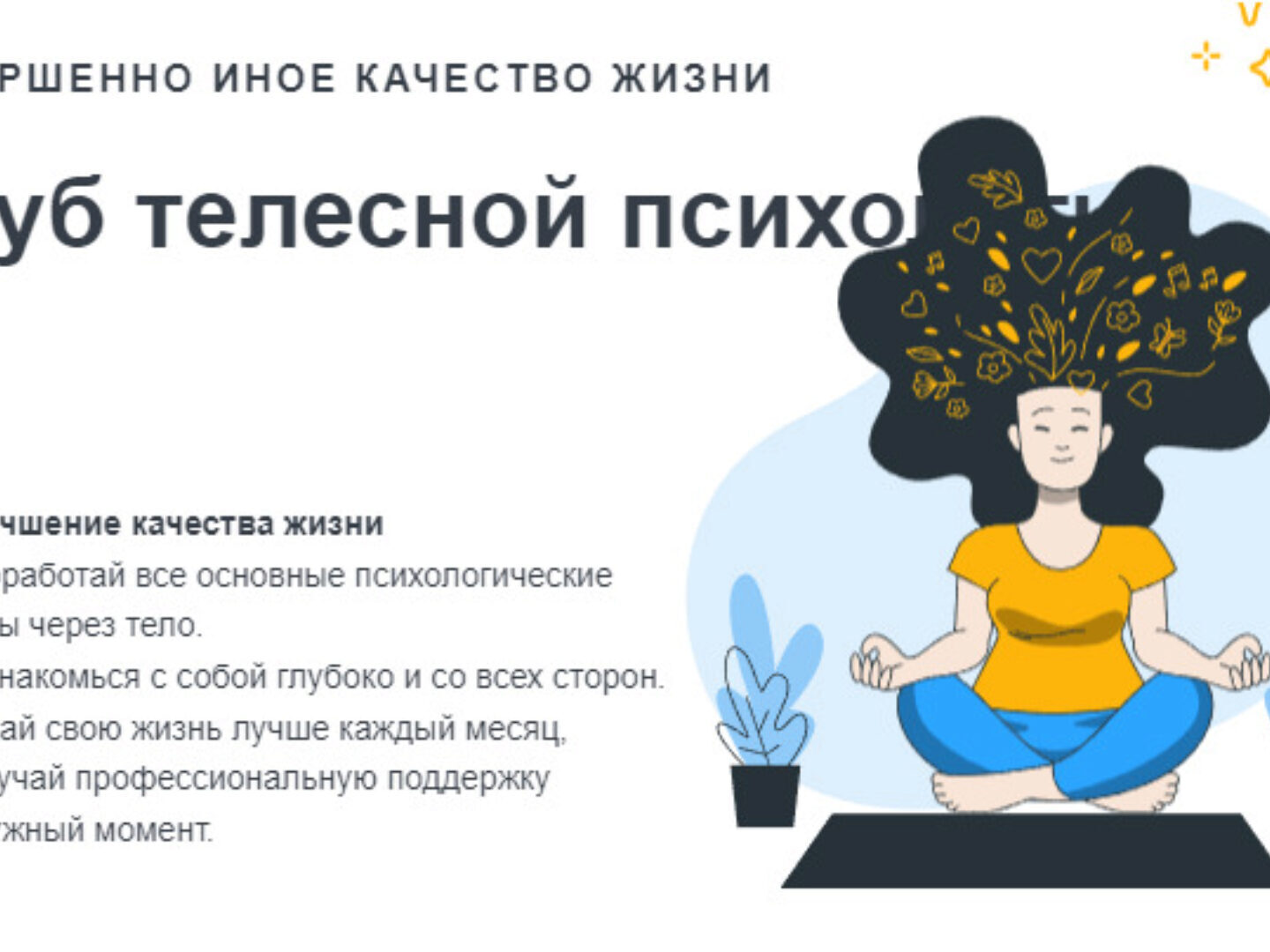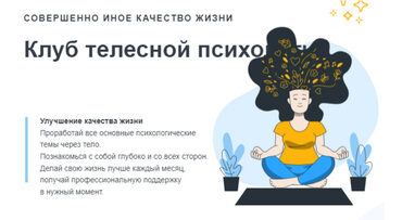 Клуб телесной психологии, март 2022. Тариф Самостоятельный (Оксана Ефимова) Клуб телесной психологии СОВЕРШЕННО ИНОЕ КАЧЕСТВО ЖИЗНИ Улучшение качества жизни. Проработай все основные психологические темы через тело. Познакомься с собой глубоко и со всех сторон. Делай свою жизнь лучше каждый месяц,