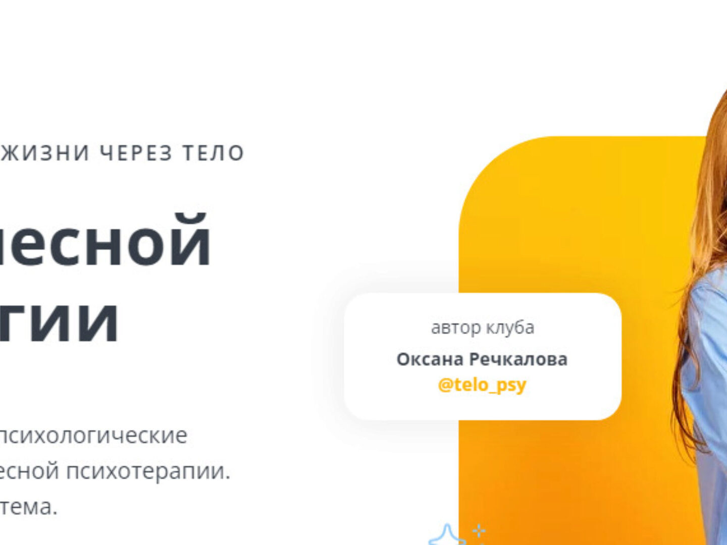 Клуб телесной психологии, март 2022. Тариф Самостоятельный (Оксана Ефимова) Клуб телесной психологии СОВЕРШЕННО ИНОЕ КАЧЕСТВО ЖИЗНИ Улучшение качества жизни. Проработай все основные психологические темы через тело. Познакомься с собой глубоко и со всех сторон. Делай свою жизнь лучше каждый месяц,