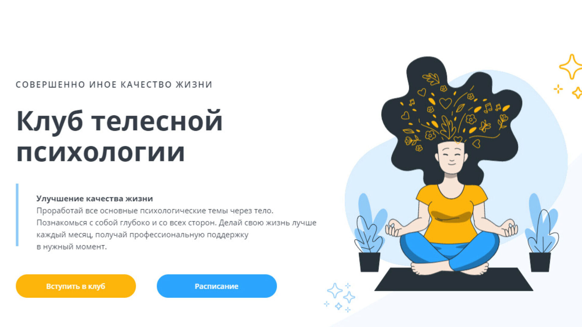 Клуб телесной психологии Совершенно иное качество жизни Улучшение качества жизни. Проработай все основные психологические темы через тело. Познакомься с собой глубоко и со всех сторон. Делай свою жизнь лучше каждый месяц, получай профессиональную поддержку в нужный момент. Март 2022 Баланс мужского