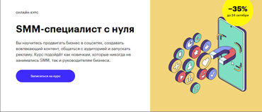Поток ноябрь 2019 - февраль 2020 ПРАКТИЧЕСКИЙ КУРС ДЛЯ ТЕХ, КОМУ НУЖНЫ НЕ ЛАЙКИ, А РЕАЛЬНАЯ ПРИБЫЛЬ ИЗ СОЦИАЛЬНЫХ СЕТЕЙ Через 2 месяца вы будете четко знать, как продвигать свой бренд и получать максимальную прибыль при минимальных вложениях Удобный формат обучения Продолжительность курсов — 2