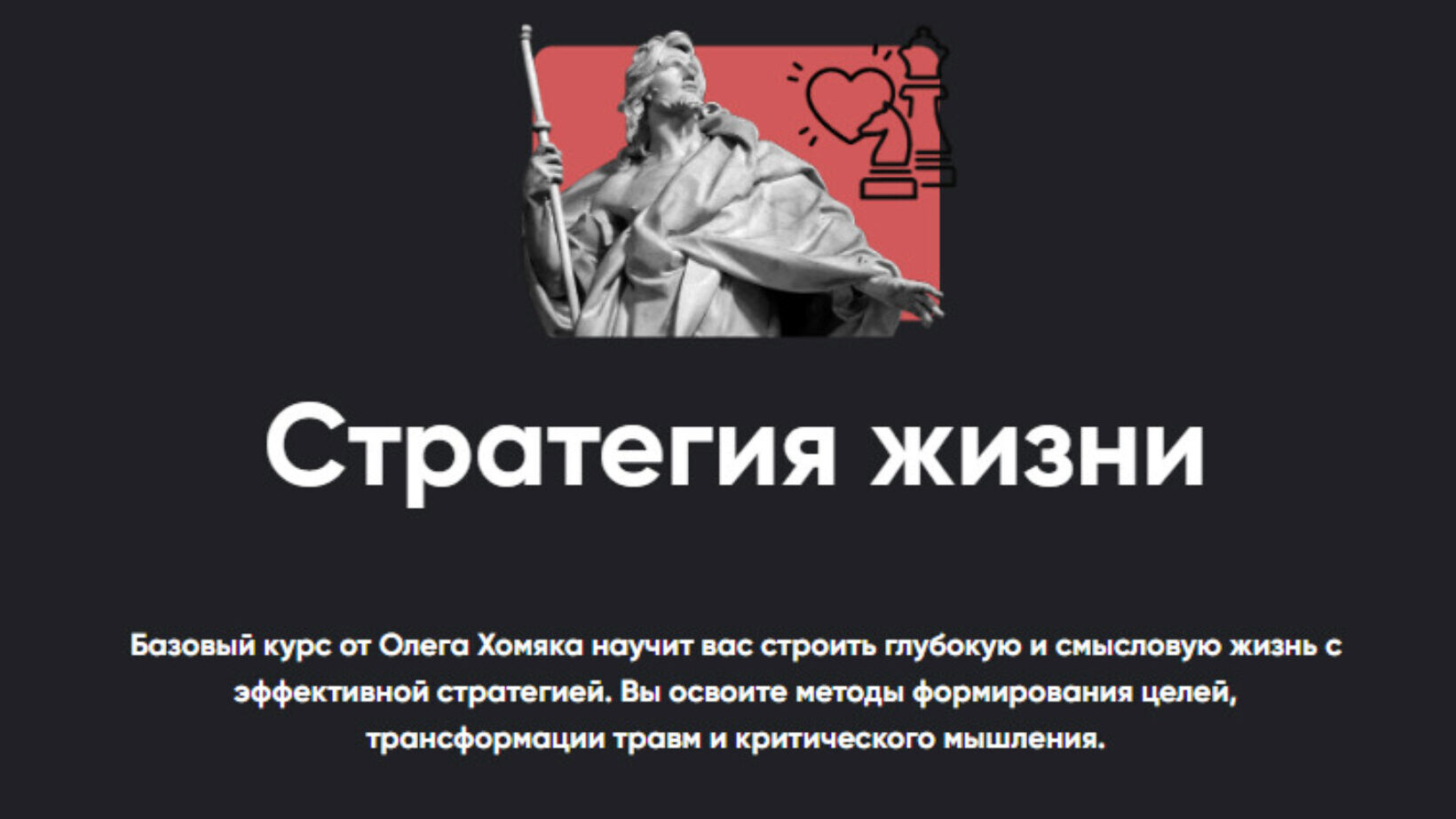 В эпоху, когда мимолетные тренды и поверхностные меры успеха заполонили нашу культуру, курс «Стратегия жизни», созданный психологом Олегом Хомяком, предлагает вам научиться строить жизнь, наполненную глубиной, смыслом и стратегическим видением.