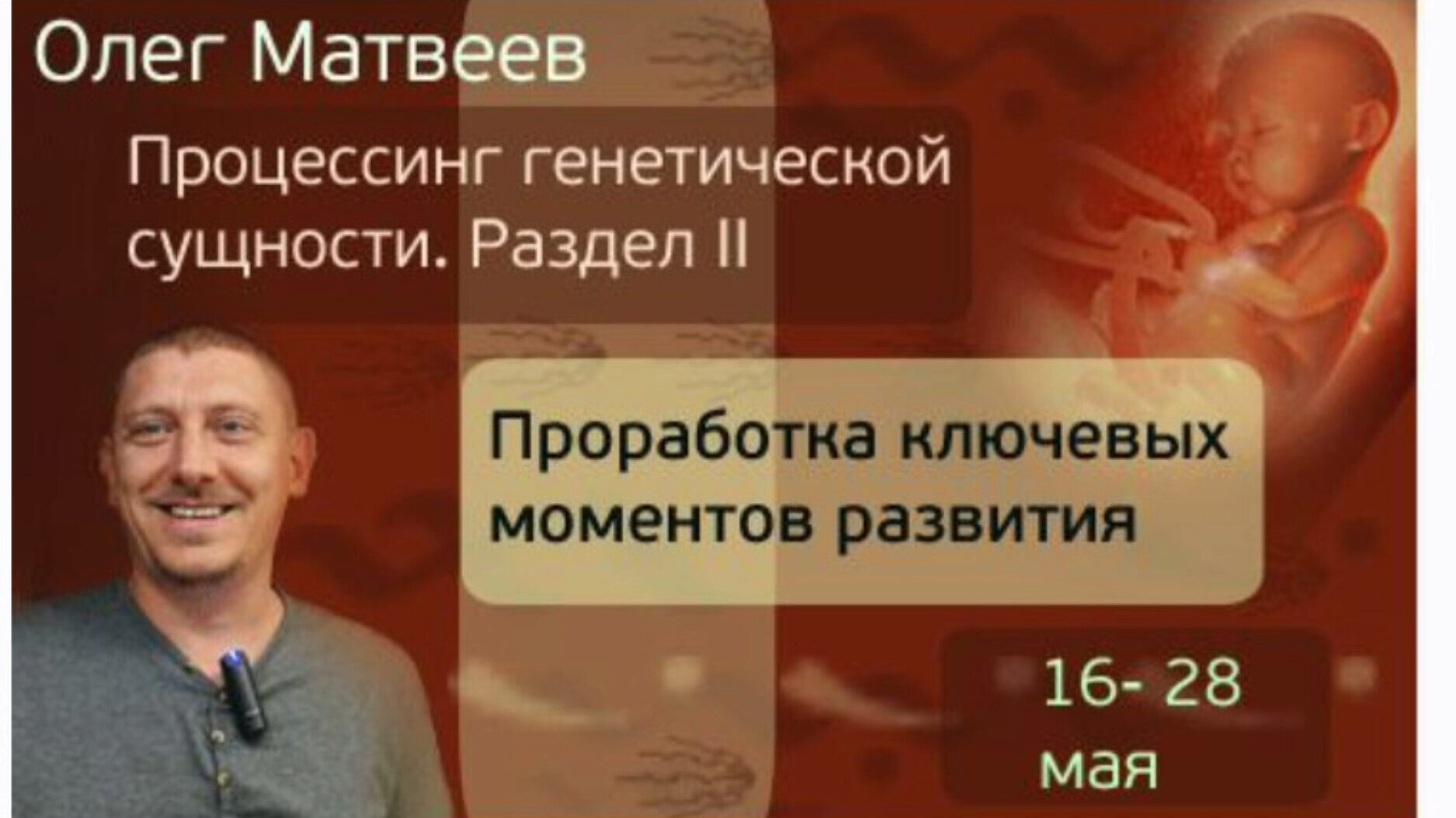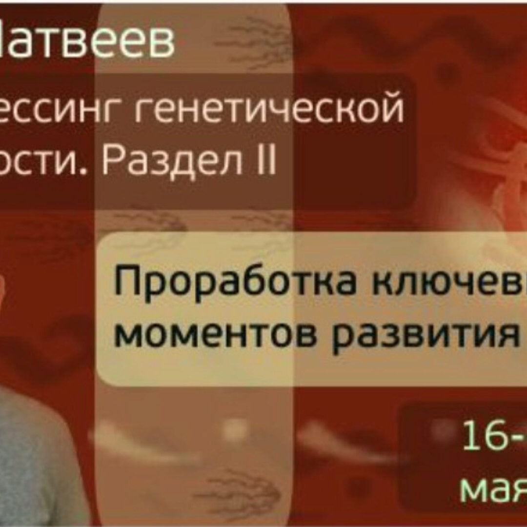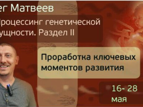 Процессинг Генетической Сущности (Олег Матвеев) 1 часть Первый раздел авторской программы Олега Матвеева по активной и глубокой проработке психосоматик и эмоциональных зарядов. Здесь мы получим все базовые техники и алгоритмы и научимся использовать их для ремонта текущей жизни и повседневных