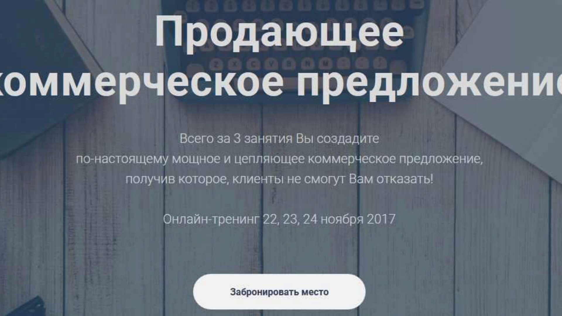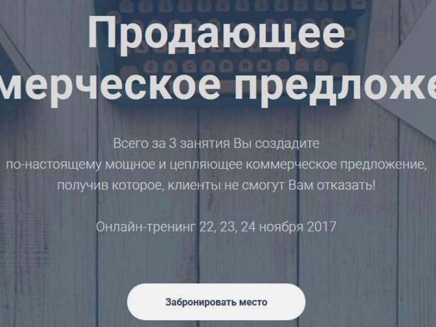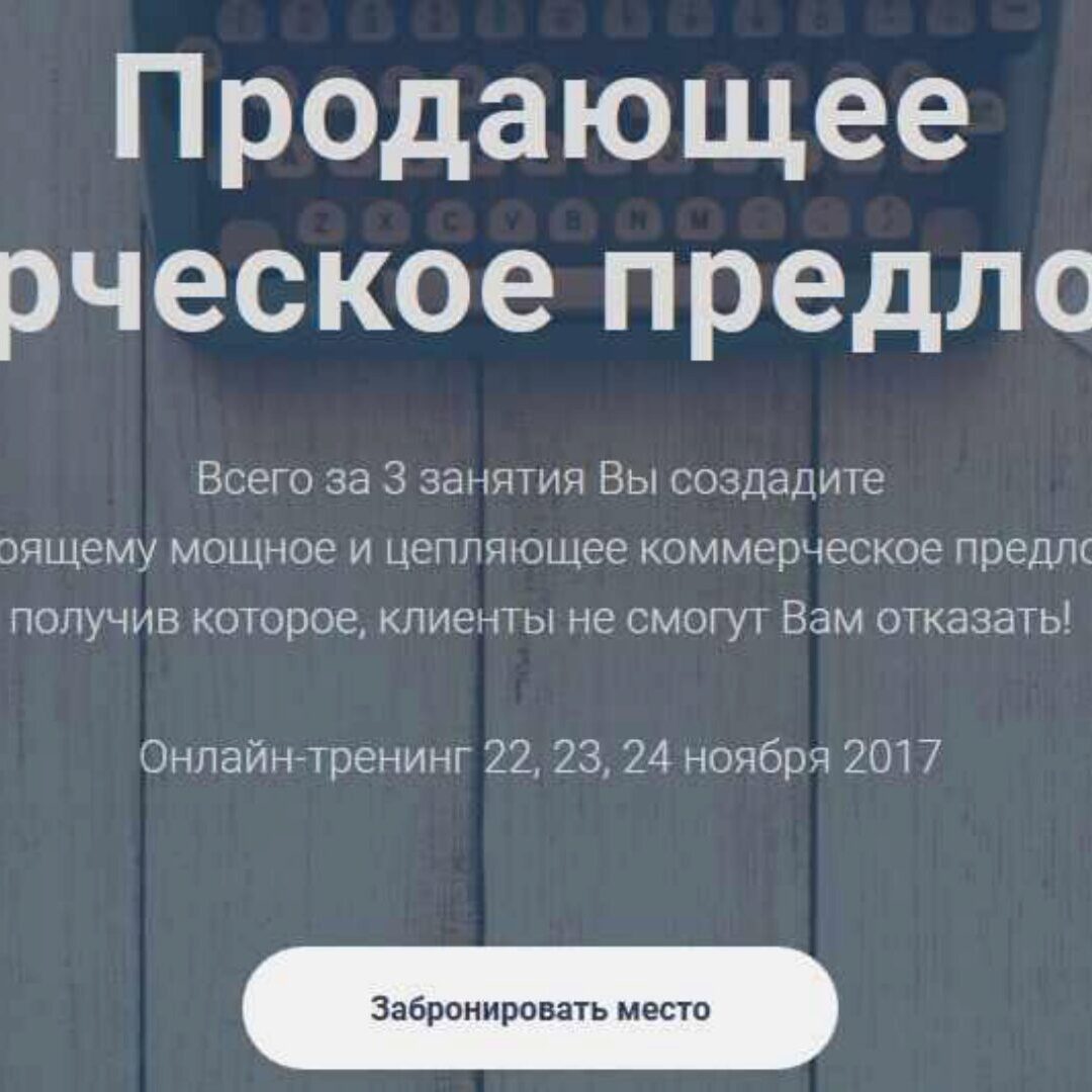 Всего за 3 занятия Вы создадите по-настоящему мощное и цепляющее коммерческое предложение, получив которое, клиенты не смогут Вам отказать!
