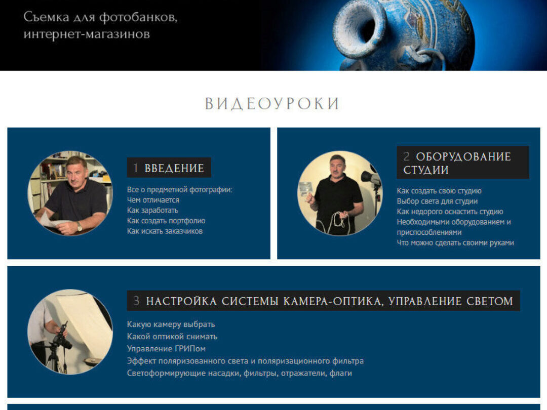 Когда я переходил с фотографии на видеосъемку, я совершил довольно много ошибок. Потратил и лишние деньги и, что самое главное, лишнее время. Курсов по предметной видеосъемке на тот момент не было, так что пришлось «набивать себе шишки» и учиться методом проб и ошибок. В этом курсе я постарался