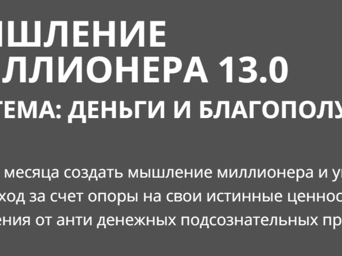 Как настроить свое подсознание на получение больших денег После прохождения курса вы будете владеть уникальной технологией мышления успешных людей, которая позволяет с легкостью достигать самых смелых целей, не замечая препятствий. А вы когда-нибудь задумывались, чем мышление богатых отличается от