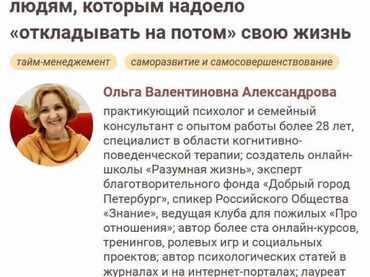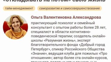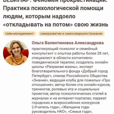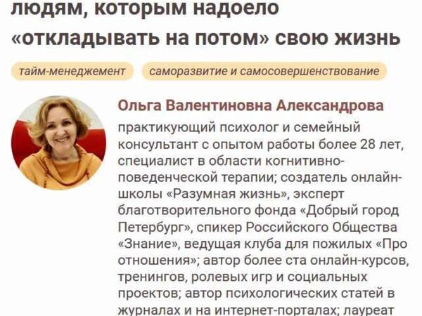 Отзывы о курсе Феномен прокрастинации. Практика психологической помощи людям, которым надоело «откладывать на потом» свою жизнь от Ольги Александровой