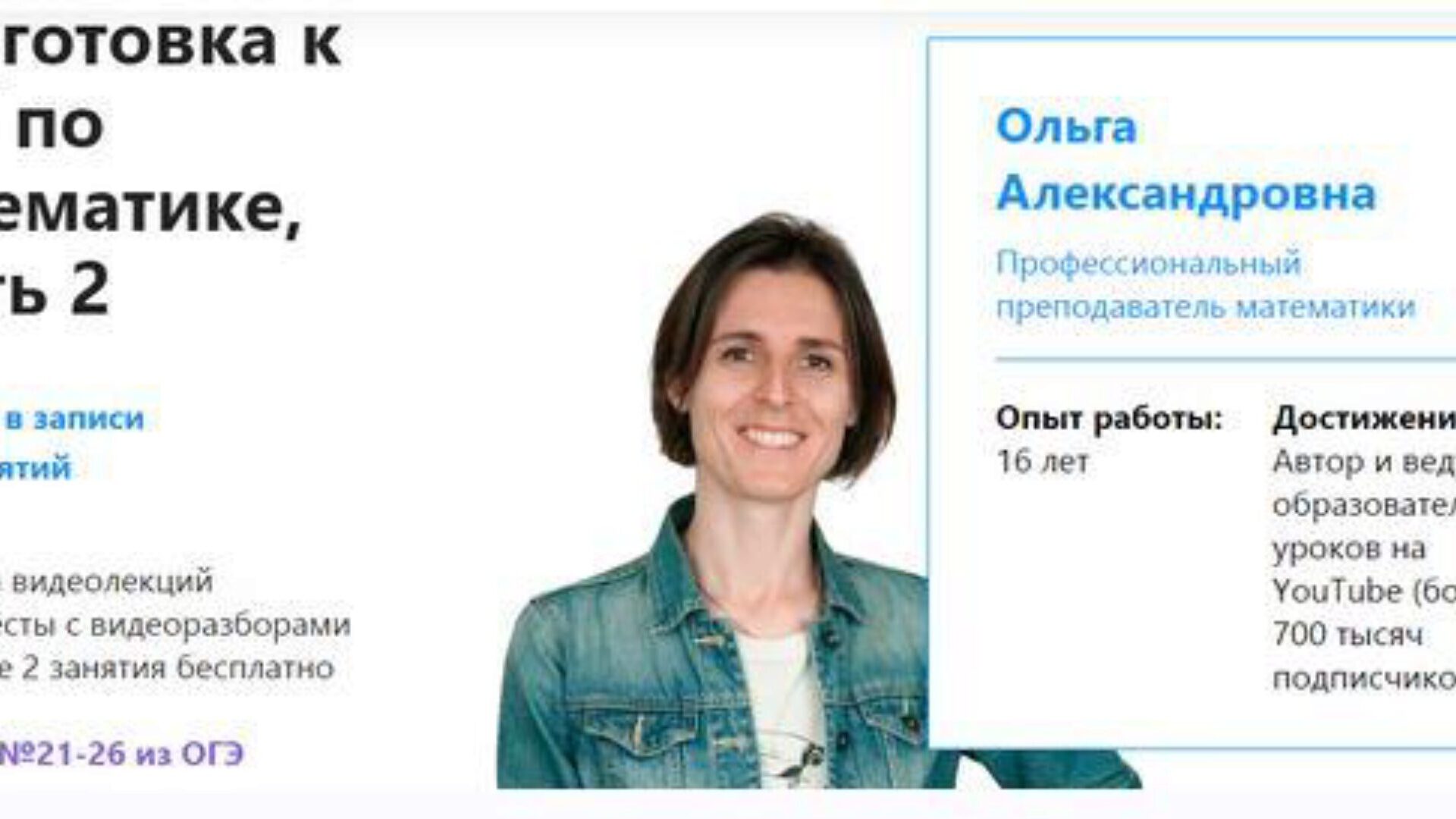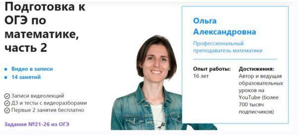 Ольга Александровна «Подготовка к ОГЭ по математике, часть 2» — TutorOnline