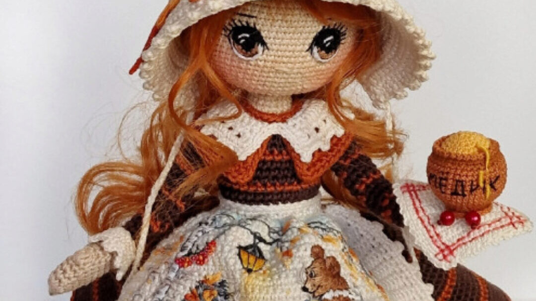 Вязаная кукла с элементами вышивки, материал в формате ПДФ.