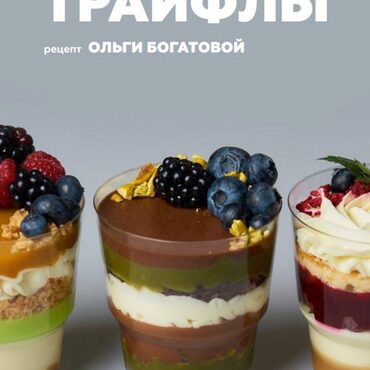 Уроки ТРАЙФЛЫ: Часть 1 и 2 бисквитные и бисквитно-муссовые: Трайфлы с брусничным конфи и кремом малиновый йогурт Шоколадные трайфлы с вишней Шоколадные трайфлы с карамелью и фундуком, а-ля Сникерс Апельсиновые трайфлы с карамелью и мандариновым желе Тропические трайфлы с кокосовым муссом Трайфлы с