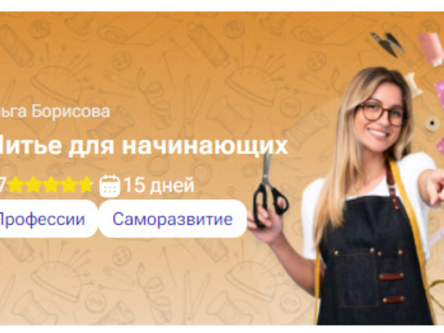 Курс подойдет как тем, кто только начинает знакомство с шитьем, так и тем, кто хочет улучшить свои навыки.