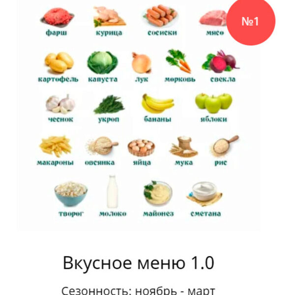 Вкусные меню - электронные кулинарные журналы с готовыми меню на неделю. Завтраки, обеды и ужины из доступных продуктов. Конечно, список продуктов прилагается. Все в граммах и даже штуках. Чтоб закупиться один раз и готовить из этих продуктов всю неделю. Порции большие, мы любим поесть каждое меню