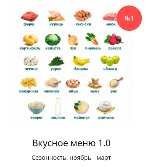 Продуктовые корзины для вкусных меню доступные, стоимость продуктов на неделю составляет 2500-2800 р. в зависимости от региона.