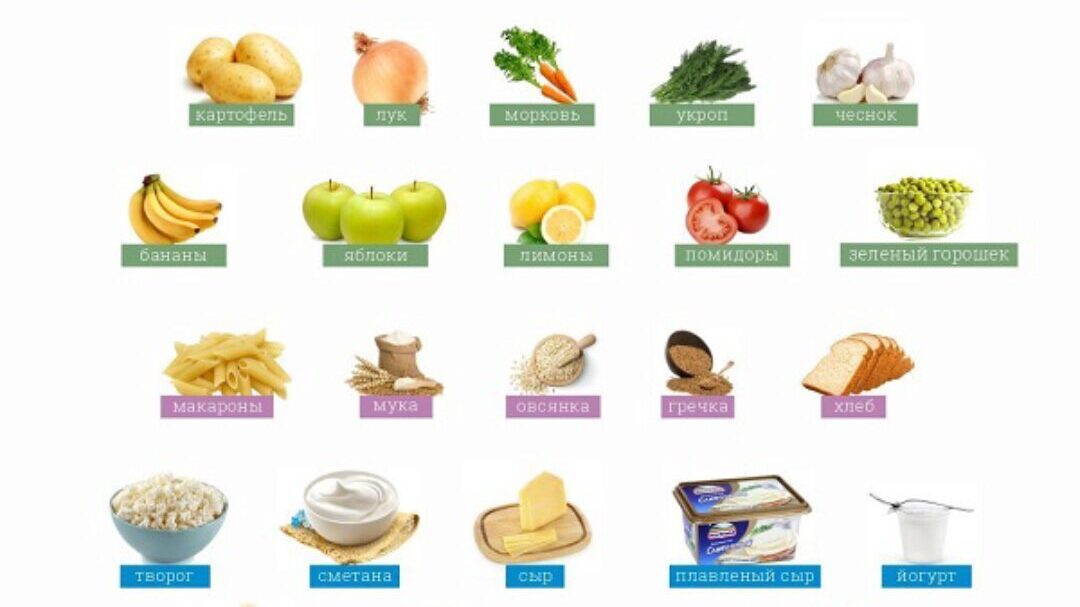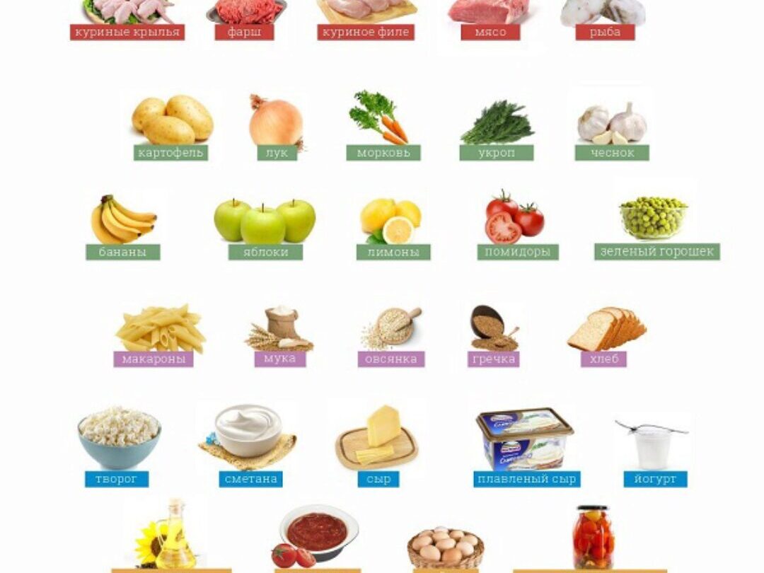 Набор продуктов, который мы использовали в меню, изображен на картинке.