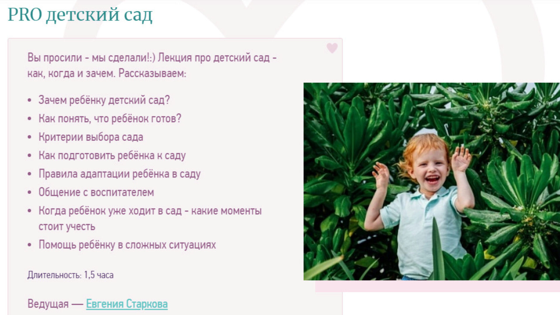 Длительность: 5 недель. Начало обучения: 7 июня. 5 модулей 5 прямых эфиров Тариф - Я сама Модуль 1. Как стать уверенным в себе, спокойным родителем? Модуль 2. Что на самом деле нужно ребенку от родителей? Модуль 3. Как развить эмоциональный интеллект? Модуль 4. Как устанавливать границы и правила?