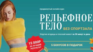 Вы получите на курсе Стройное тело: 20 тренировок в личном кабинете 10 лекций от нутрициолога план питания на 4 недели с рекомендациями и рецептами видеоуроки «Массаж живота» курс Интимные мышцы: 7 тренировок + гайд курс Здоровая спина: 10 тренировок + как убрать холку курс Фейсфитнес для мам 3